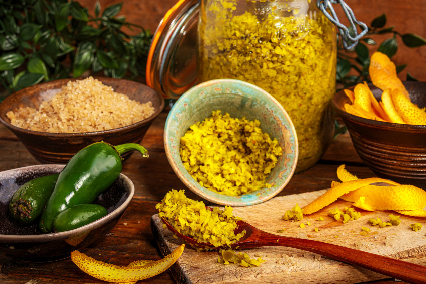 Претеглете приготвената паста от цитрусови кори и люти чушки и добавете сол според това колко бърза ферментация търсите (10–12% или 12–15%, описано в стъпка 5). Разбъркайте до равномерно разпределение.