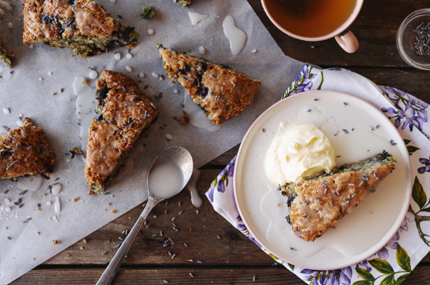 След като хлебчето се изпече го извадете леко да се охлади. През това време разбъркайте пудрата захар с водата докато се получи гъста, но течлива каша. Поръсете отгоре хлебчетата, украсете с лавандула и сервирайте.