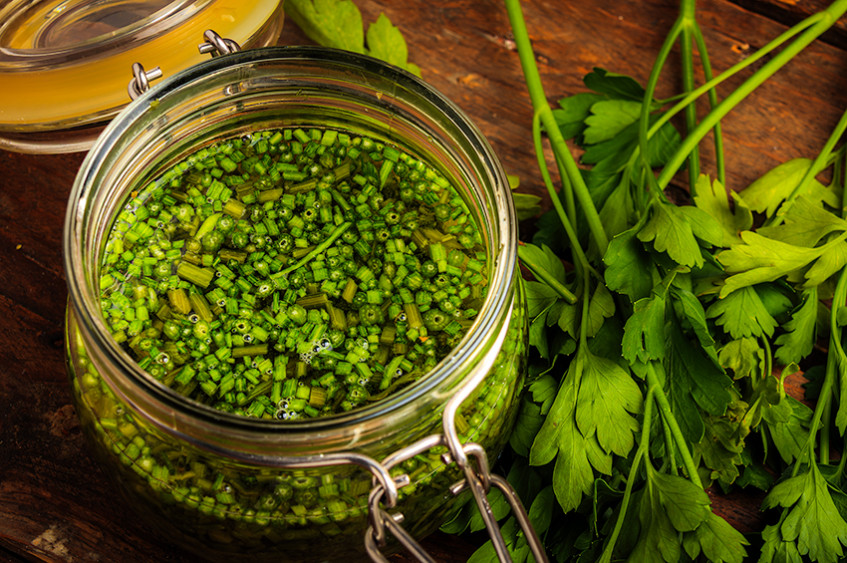 Стъблата от магданоз са изключително ароматни, но често остават неизползвани. Лактo-ферментацията им позволява да се превърнат в перфектна zero waste рецепта с пробиотични ползи, с която можете да добавите свеж вкус към салати, меса и зеленчуци. Ниското им съдържание на захари означава, че най-добре работят с умерено количество сол.