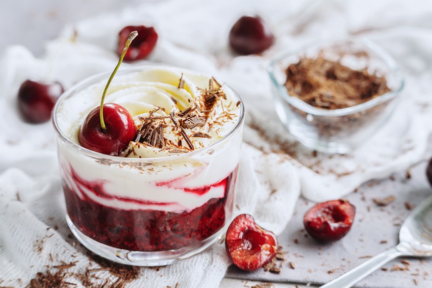 Дали ще го наречете Шварцвалд, Черна гора или Монтенегро, идеята е винаги една - шоколадова основа, череши (по-специално “Амарени”) и сметанов крем. Обикновено е под формата на торта, но е лято и ни се искаше да си “забъркаме” нещо малко по-леко и не чак толкова калорично. И ето какво измислихме