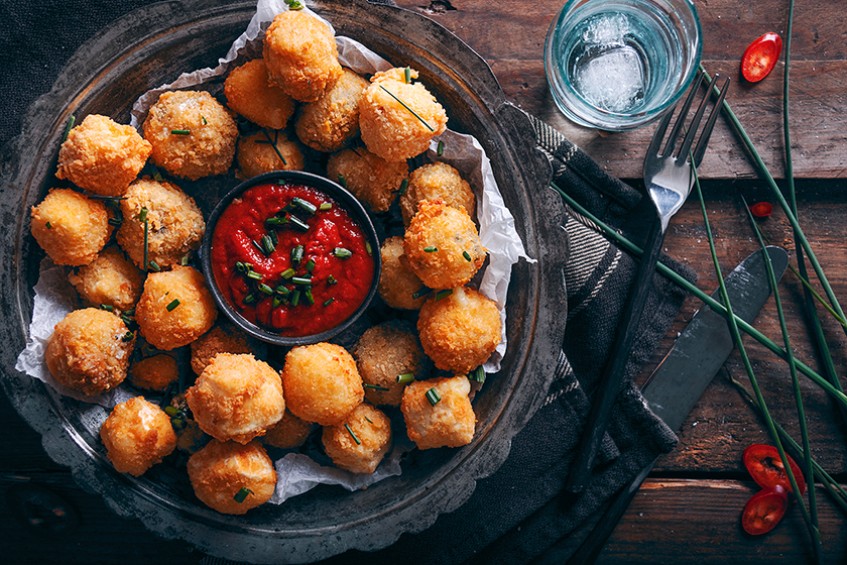 Извадете изпържените сиренца върху кухненска хартия, за да се отнеме излишната мазнина, след което сервирайте докато са още горещи със сос.
