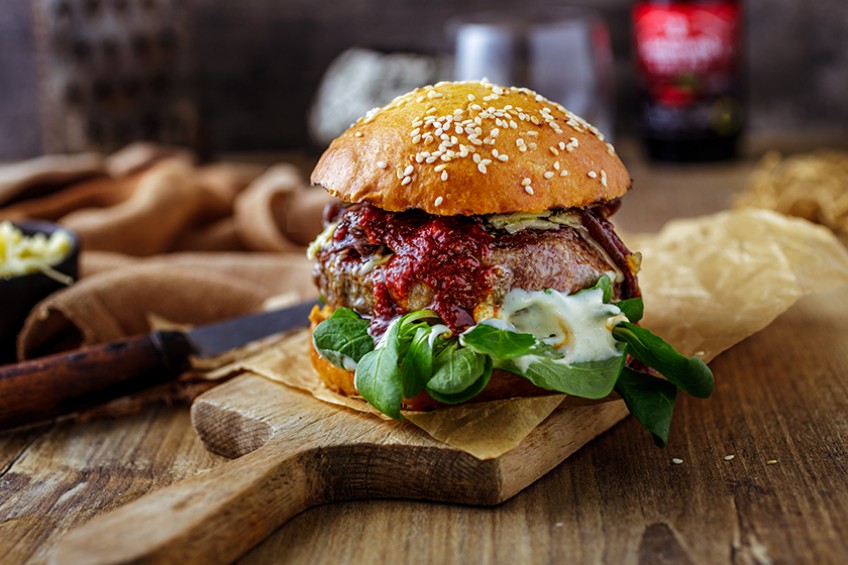 класически или Juicy Lucy (със зрял чедър, синьо сирене, сушени домати или кисели краставички) от висококачествено говеждо месо