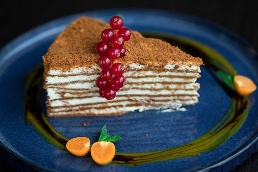 Тънки орехови платки, плътен какаов крем и шоколадова глазура